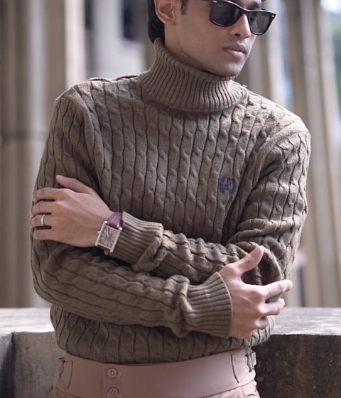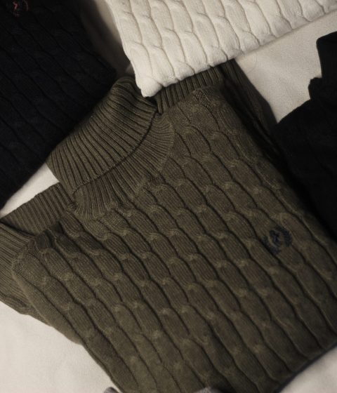 Olive Cable knit Highneck Sweater